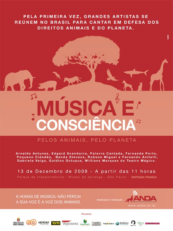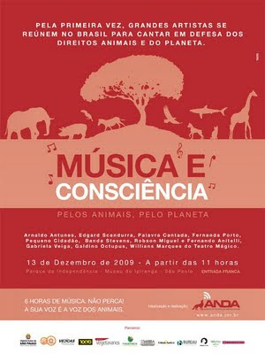 www.anda.jor.br – realiza, em conjunto com a Prefeitura de SP, um show gratuito para sensibilizar as pessoas em relação aos direitos animais e à preservação do planeta, no próximo