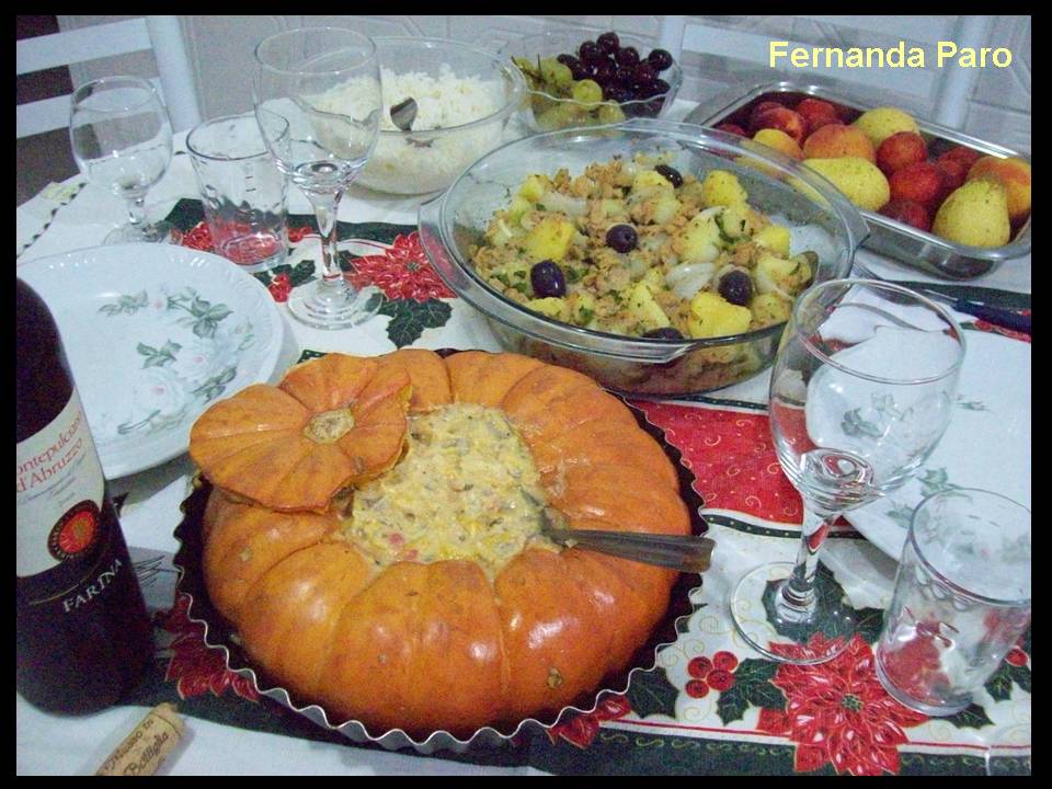 Neste Natal, nossa ceia foi totalmente vegana, o cardápio foi: Sojalhau, Shimeji na Moranga e um esperto arroz branco. Tudo acompanhado por um honesto vinho italiano.
